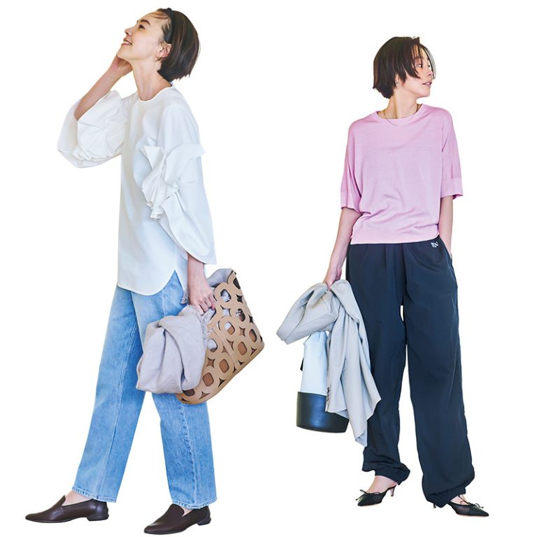 すっきりシルエットのパンツに、ボリューム感のあるニットを合わせることで甘さのあるシルエットになり大人可愛い雰囲気に仕上がりますよ◎