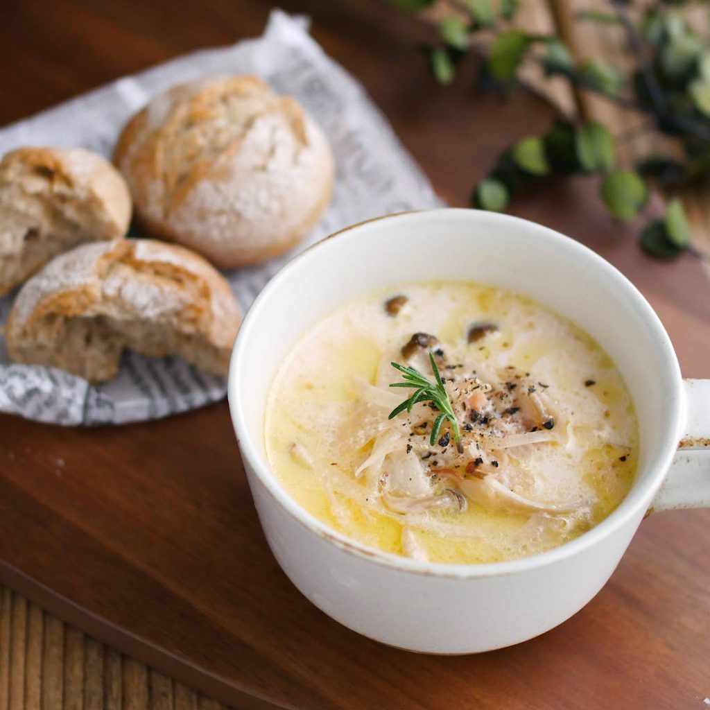家事に仕事にと忙しい毎日。時にはパンとスープだけの日があってもいいのでは?そんなレスキューごはんを広めるべく「365日のパンとスープ」の企画が生まれました!今回は、@hashimo0115さん考案の「たらこときのこのクリームスープ」を紹介します。