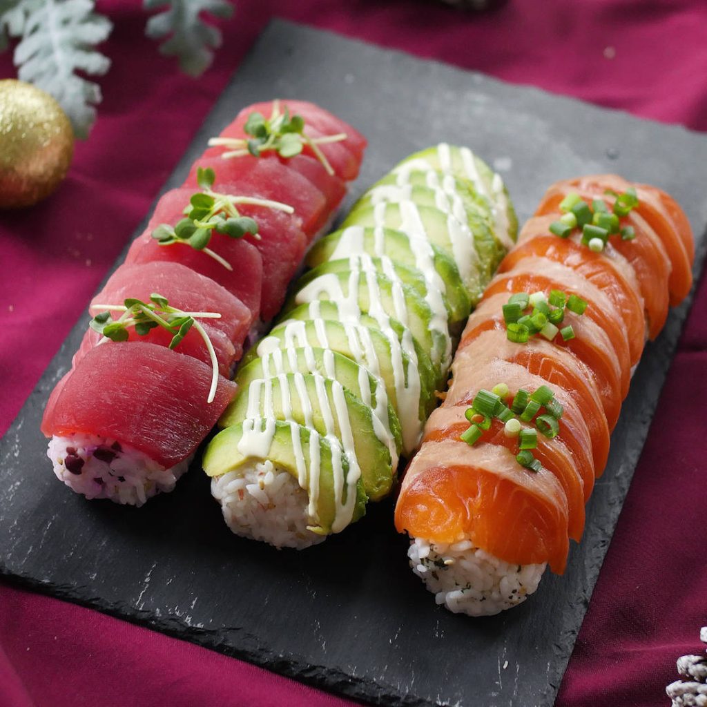 「3色ロール寿司」のレシピと作り方を動画でご紹介します。酢飯にみじん切りしたしば漬け、大葉、カニカマをそれぞれ混ぜ合わせて、マグロ、サーモン、アボカドをのせてロール状に巻きました。簡単だけどおしゃれに見える、クリスマスパーティーにもピッタリなおもてなしレシピです♪