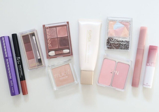 肌に溶け込むようなヌーディーなピンクのアイシャドウ。プチプラには見えない上品なツヤのある仕上がりは流石キャンメイク!
