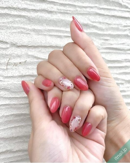数本だけ、大理石風にアートをします。他の爪は、ベージュのワンカラーで塗りましょう。ワンカラーの根元に、大きめのビジューを思いっきり盛ります。取れにくくするために、ビジュー接着用のジェルやグルーを使用して。ゴールド系のストーンやパール、クリアストーンを乗せれば、ベージュ系と相性も良いでしょう。