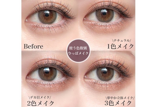 細い目さんは縦に大きく見せてあげるのがポイントになります。アイシャドウは縦に大きく見えるように真ん中に締め色を高めに入れてあげると良いですよ。