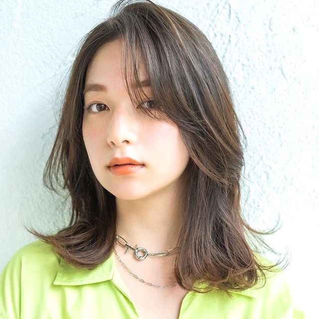 髪色を黒髪に近いダークトーンにすることで、肌の透明感もUP。前髪を長めに残してサイドの髪と馴染ませることでフェイスラインがカバーされて、より大人っぽい印象に仕上がります。エフォートレスなスタイリングでシャープな中にも柔らかな雰囲気を纏いましょう。