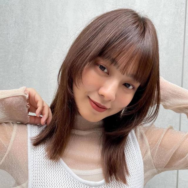 透け感のある長めの前髪を残して全体に柔らかくボリューム感を出しつつ耳を覗かせたスタイルは愛らしさたっぷり。あご周りや首元がスッキリ見えるので、小顔効果も抜群です。スタイリング剤を全体にもみ込んでラフにセットするだけで、さり気なくリラックスした印象を醸す好印象なスタイルに仕上がります。