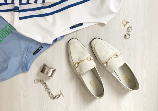 ブルーなど寒色系を使った配色なら、爽やかで涼し気な印象に。ボトムスも淡いカラーを選んで、バランスのとれた夏らしいスタイルに仕上がっています。