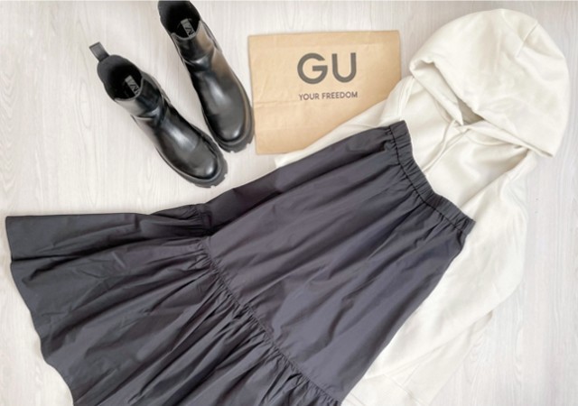上下とも装飾が少ないシンプルデザインなので、自由自在にトップスを合わせやすい着回し力抜群なアイテム。