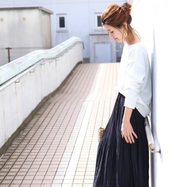 ファッションインフルエンサー・Miyoさんとコラボのプルオーバー。合わせやすいシンプルなデザインながら、タックがあしらわれた立体的な袖が目を引きます。