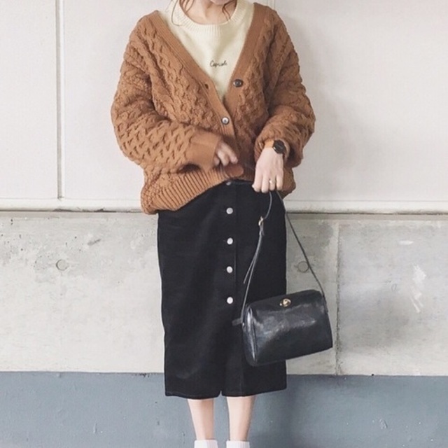 ⑤異素材で360°おしゃれ!レイヤードトップス×スカート