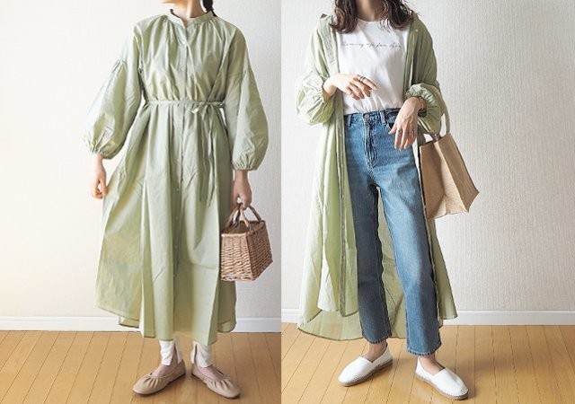 カラーカーディガンを肩掛けすると、重心が上がってスタイルアップ効果も期待できますよ♪