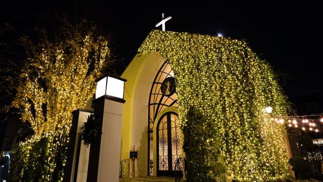 ミッキーとミニーが手をつないで見つめ合っていますね!楽しそう〜!