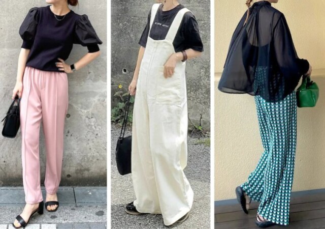 イージーウエストでサッと着脱できるプルオンパンツ。ゆったりしつつすっきりとした絶妙なシルエットや、ストライプ柄が縦ラインを強調し脚を細く見せてくれます。