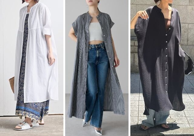 パンツでスタイリッシュに、マーメイドやフレアスカートでフェミニンにと、ボトムスで楽しむこともできます。ワンピやサロペットに羽織れば、また違った雰囲気に。