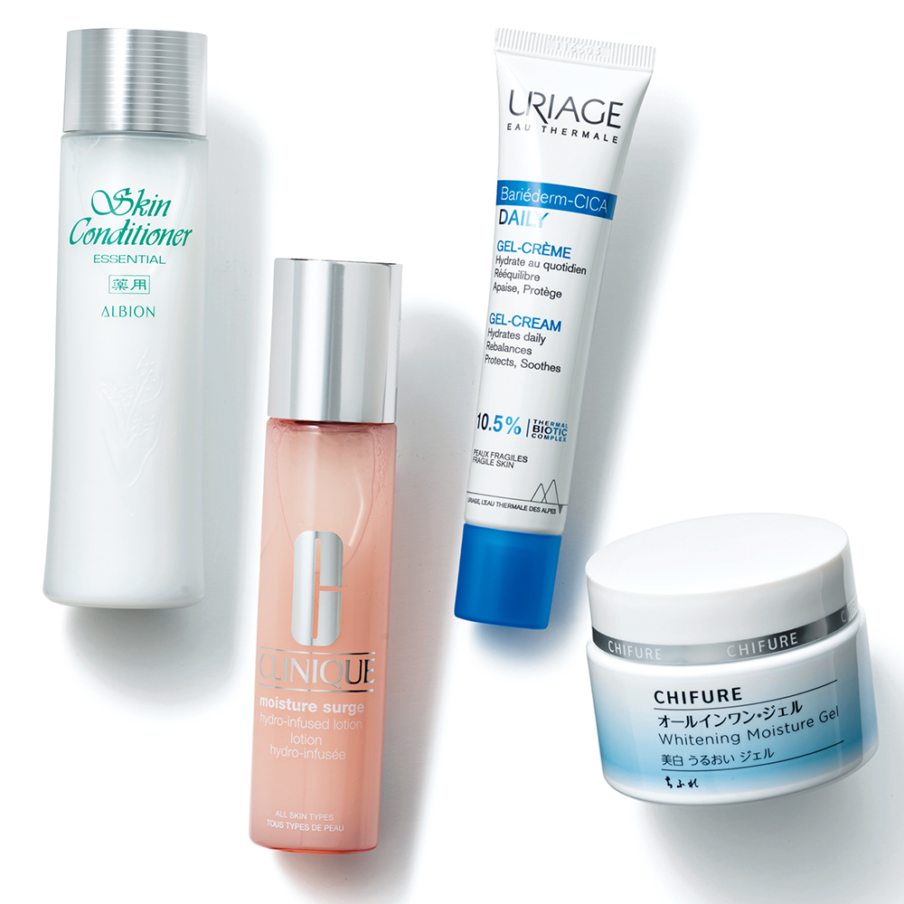 肌が火傷した状態の時は、体中の水分も持っていかれるので、水分補給も重要になってきます。たっぷり水を飲んで、スキンケアでもしっかり保湿し、内側と外側、両方から脱水を防ぎましょう。火傷をした状態なのでシンプルケアが大前提。ワセリンなどは、熱がこもりやすいので避けて、抗炎症作用がある成分(トラネキサム酸、グリチルリチン酸ジカリウム、アラントインなど)のサラッとしたテクスチャーのものやジェルでたっぷりと保湿してくださいね。