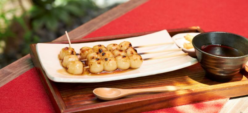 みたらしだんごの起源は、下鴨神社にある「御手洗(みたらし)」という池にあります。後醍醐天皇が御手洗池で水をすくった際に最初にひとつの泡が、続いて4つの泡が浮き上がったことから、その泡をだんごに見立てて作ったといわれています。