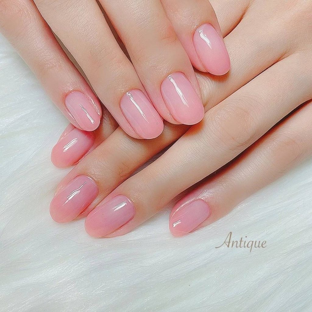 くすみがちな手元に馴染んですっぴんのように見せながら、爪も肌もトーンアップさせるピンク系ネイルは、大人だからこそマネしたいネイルデザイン。