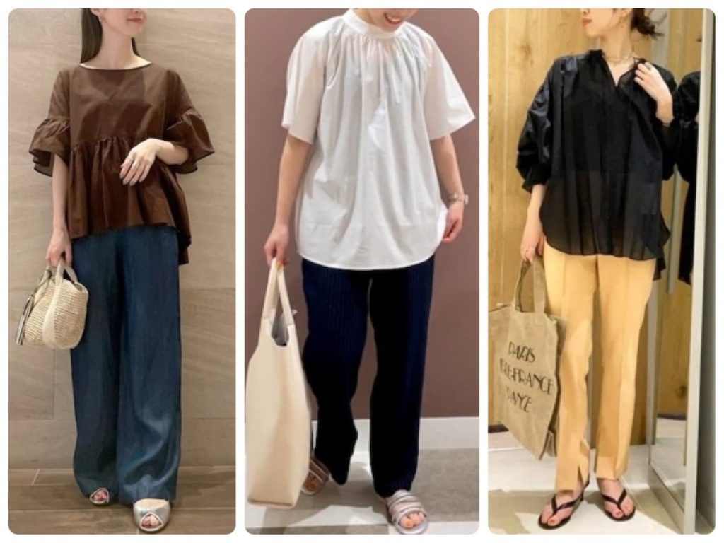 袖口にゴムが入ったブラウスは、ブラウジングなどで印象も変えやすく、ボトムスを変えてもバランスを整えやすいのがポイント。より長い期間着られてコスパの面でも優秀です。