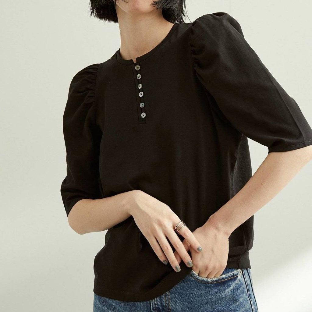 ◆ADAM ET ROPE' フロントボタンパフTシャツ