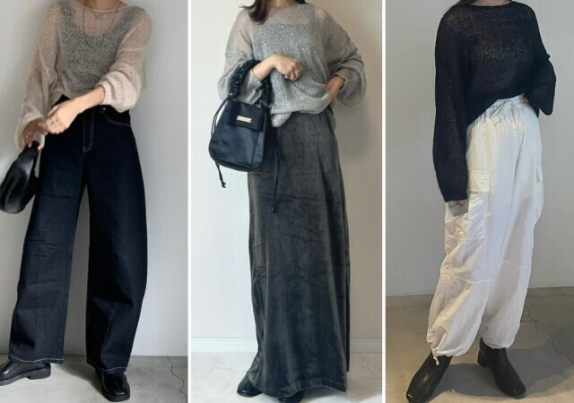 リラックス感を意識したゆるっとシルエットのカーディガンやワイドパンツも目立ちました。