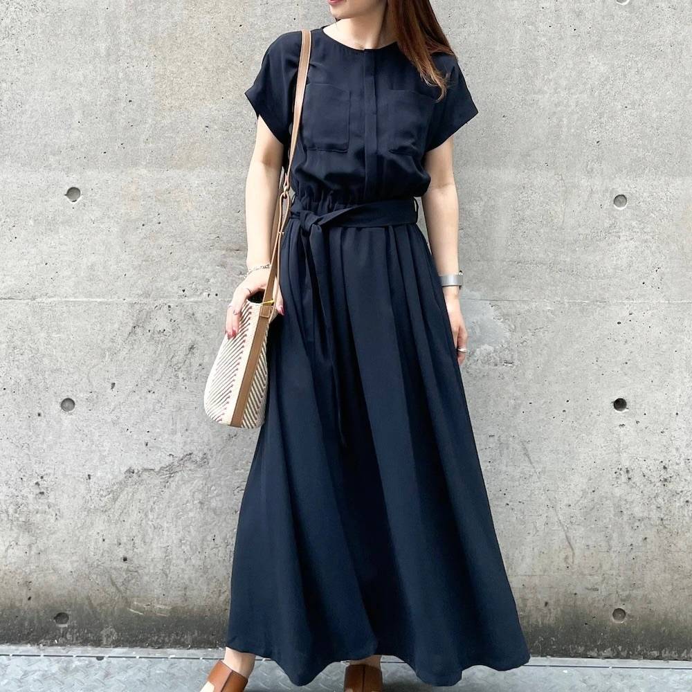 【ネイビーワンピース】晩夏のいい女風コーデ⑤ウエストマークをする♡