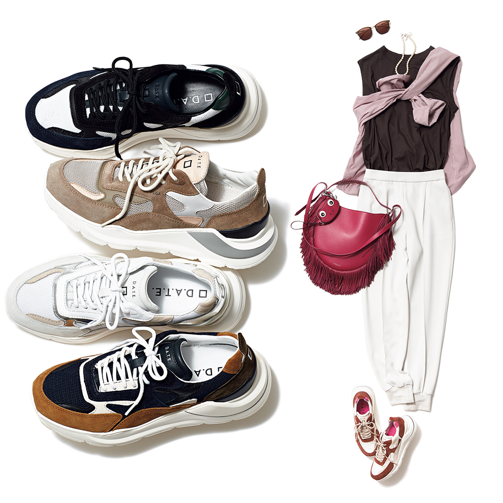 スニーカーがママたちの毎日に定着化した今。誰もが1足は持っていることがデフォルトな時代だからこそ、NEXTスニーカーはTPOで選びたい。少しずつ始めたい秋のオシャレとともに、シーン別におすすめスニーカーをご紹介します。完売続出の人気スニーカーといえば「D.A.T.E.」。この秋狙い目のデザインをピックアップしました。