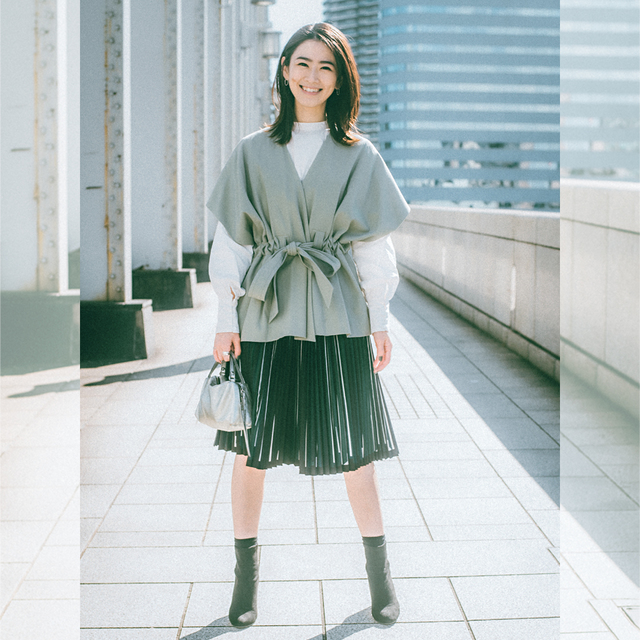 適度にハリ感のある素材を使用しているから、フレアがきれいに出てきれいにはけるのも魅力。全方位ウケする上品なデザインなので、オフィスにもおすすめです。