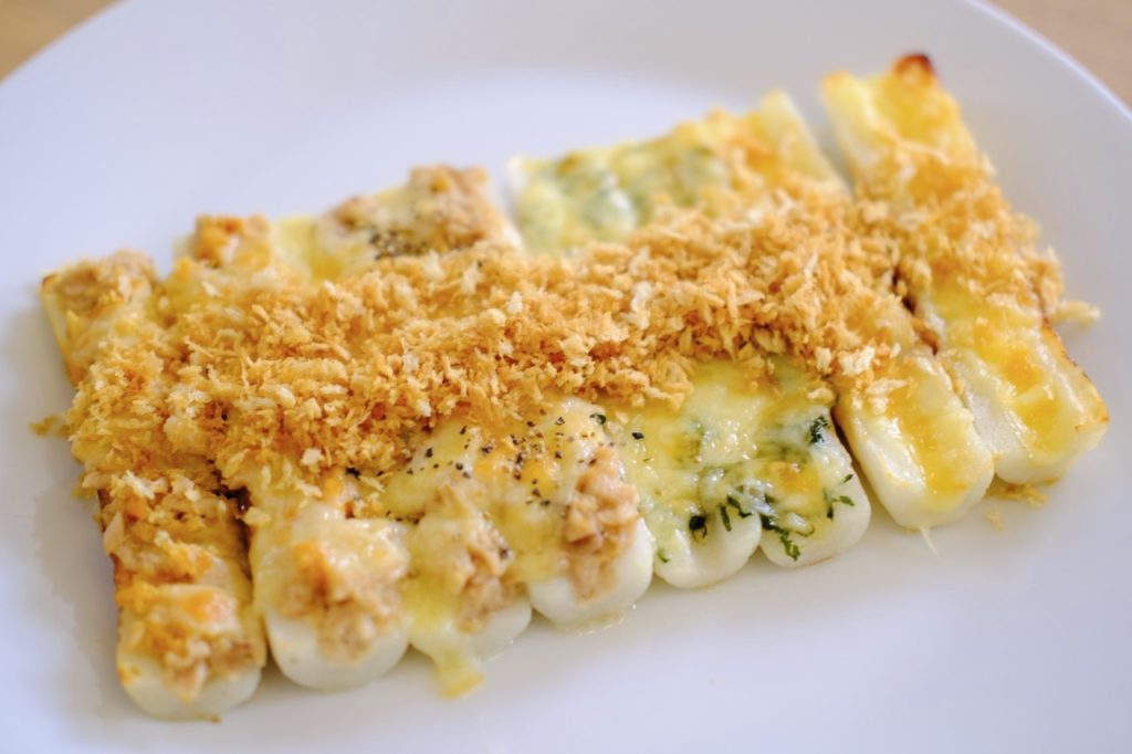 早速プレーンから頂いてみると…旨っ!!!ちくわの旨味とチーズのコクがベストマッチ。