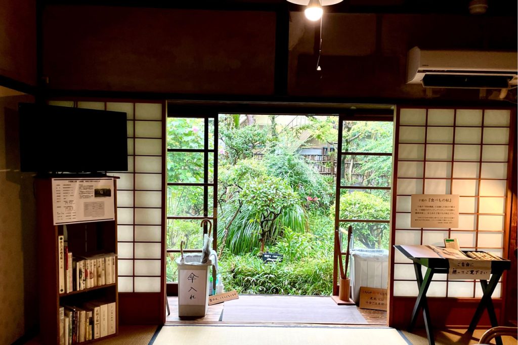 この日は台風の影響で雨が降ったりやんだりしていましたが、庭の草花は生き生きと咲いていました。庭の手入れや部屋の掃除などは、すべてボランティアの方々が行っているそうです。