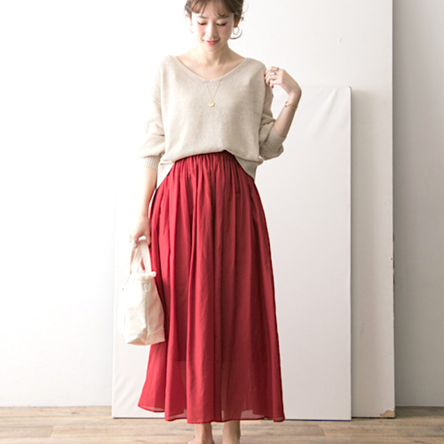 深めに入ったサイドのスリットとリボンのおかげでレイヤードスタイルが映える1枚です。オンするだけで、程よい抜け感のあるオシャ見えコーデが叶います。