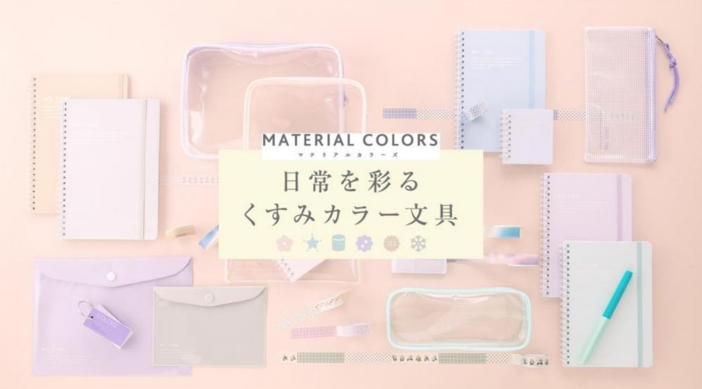 マシュマログリーン、ブルーミングピンク、ステラブルー、クリスタルグレーなど、くすみ系のパステルカラーで展開した新しい文具シリーズです。