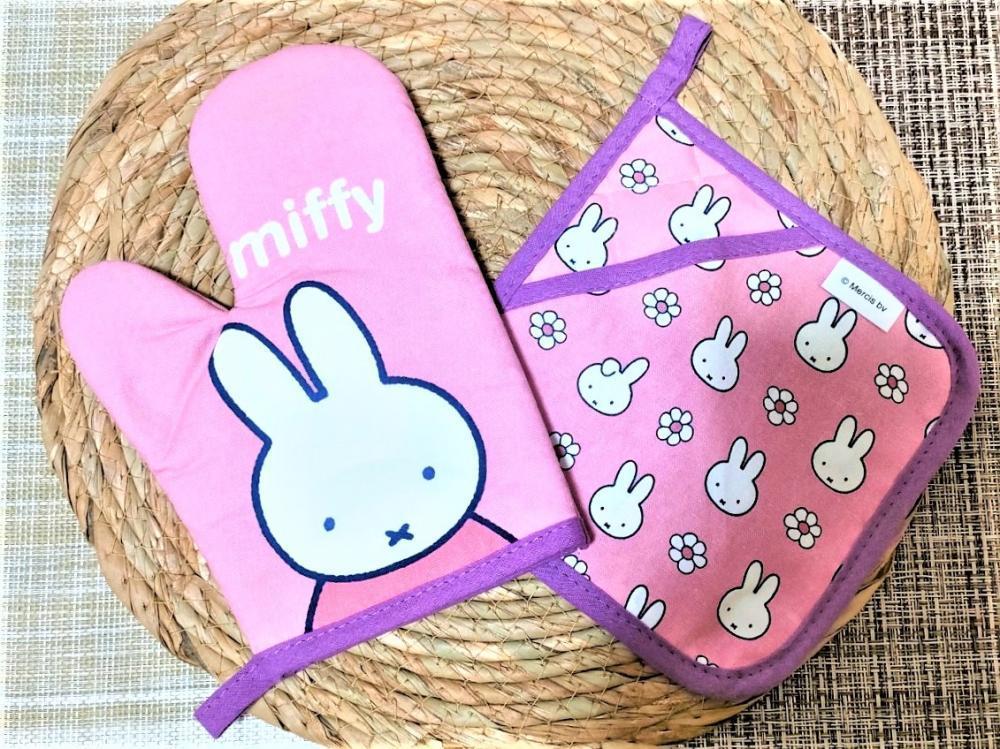 鍋つかみは、ミッフィーが大きくプリントされたデザインです。生地は厚みがあり、しっかりとしています。
