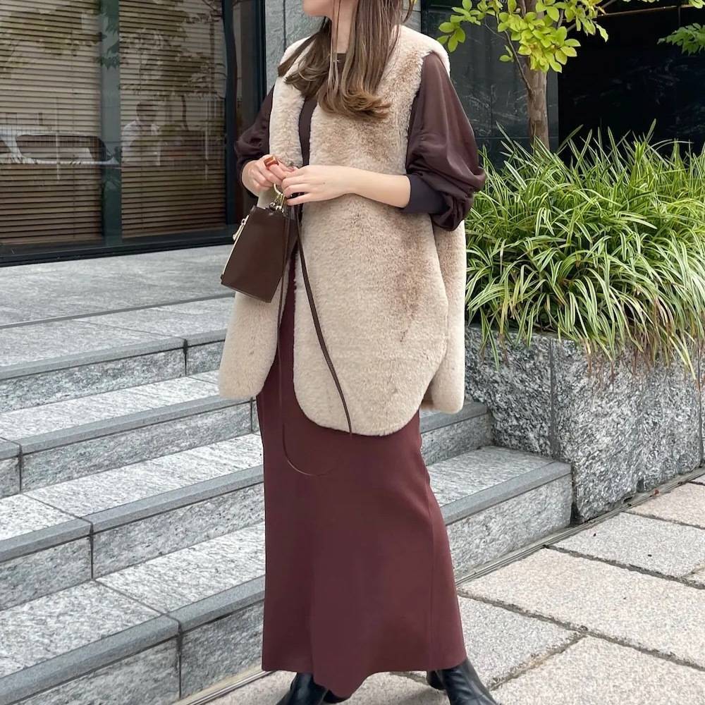 【春夏秋冬】ベストでもっとおしゃれ♡おすすめレディースコーデ③ファーべストで大人可愛く