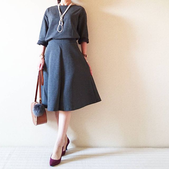 レディな雰囲気をの足しめる王道のドット柄ワンピース。小ぶりなドット柄は甘くなりすぎず、大人バランスで着用できます。ウエストシャーリングが高めの位置に入っているので、スタイルアップ効果も期待できますよ。