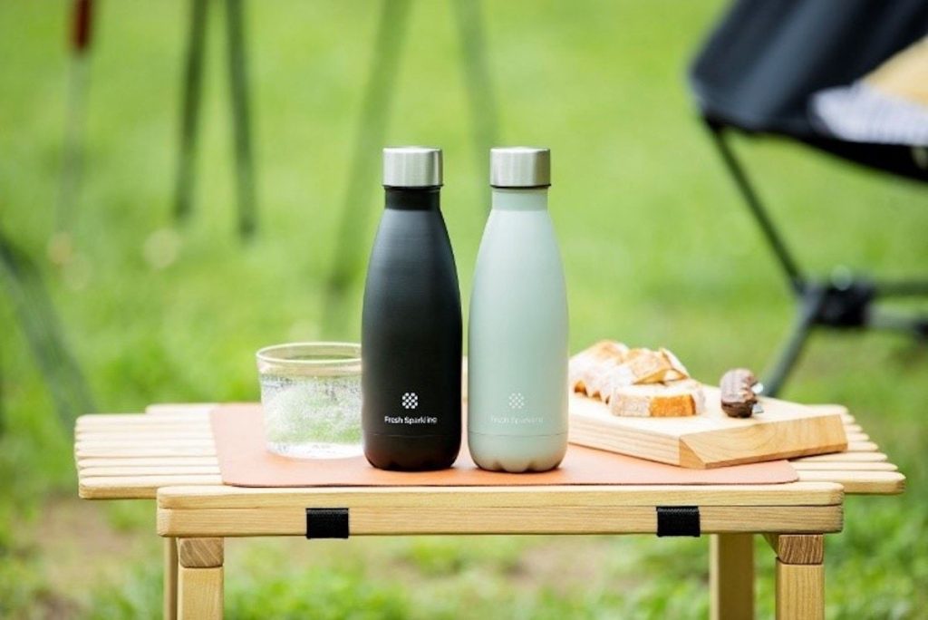 同商品は、従来の水筒には入れられなかった炭酸飲料を飲みごろの温度で持ち運べる、アウトドアにもぴったりなステンレスボトル。