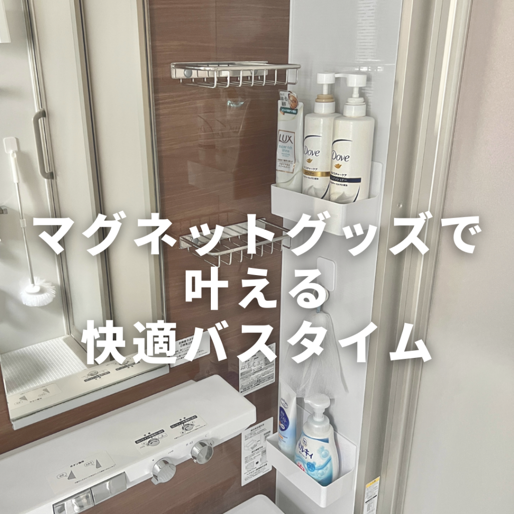 浴室小物をマグネットアイテムで浮かせてみたら、片付けやすくなり、スッキリ見せることができました。さらに日々の掃除もグッと負担が減り一石二鳥!ぜひお試しください。