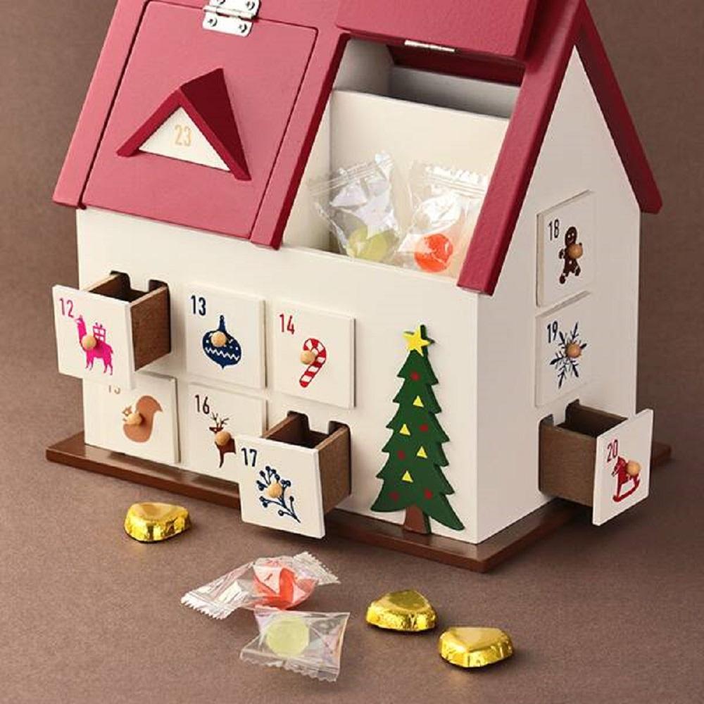 こちらもお家のようなデザインが特長。引き出しにはクリスマスベルやトナカイなどが描かれています。自宅に飾るのはもちろん、プレゼントにも喜ばれそうですね。