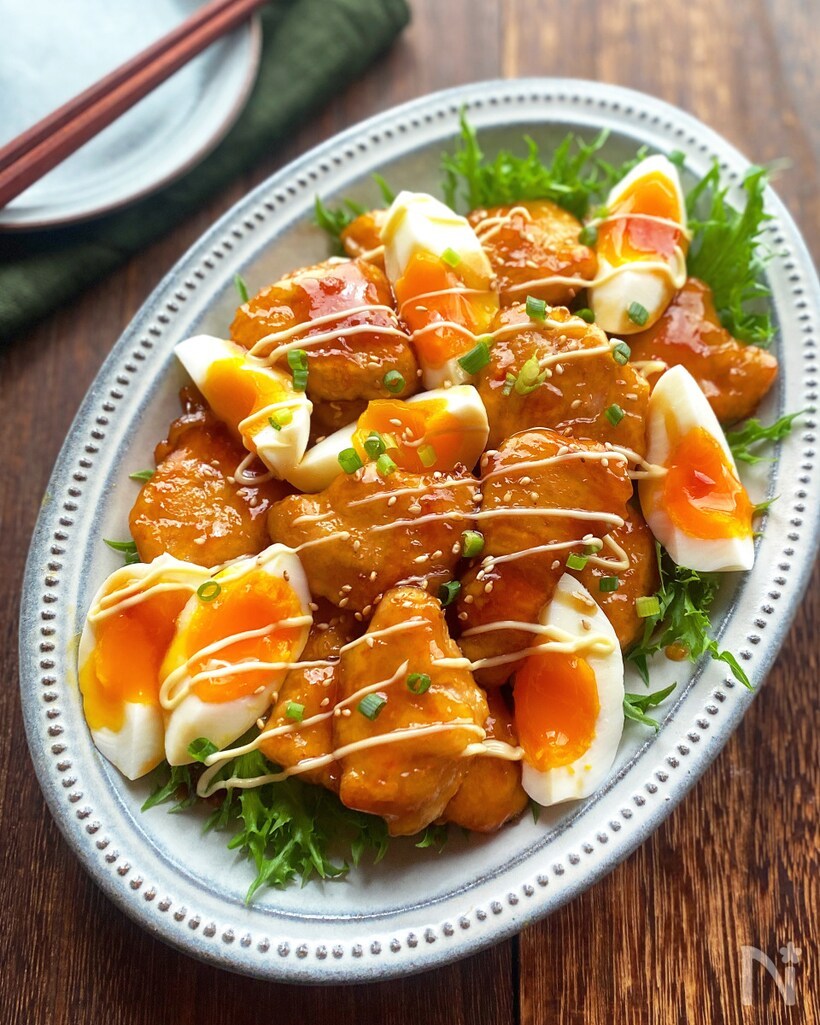 節約・ボリュームおかず!半熟卵と鶏むね肉の甘酢照りマヨチキン | レシピサイト Nadia | ナディア – プロの料理家のおいしいレシピ