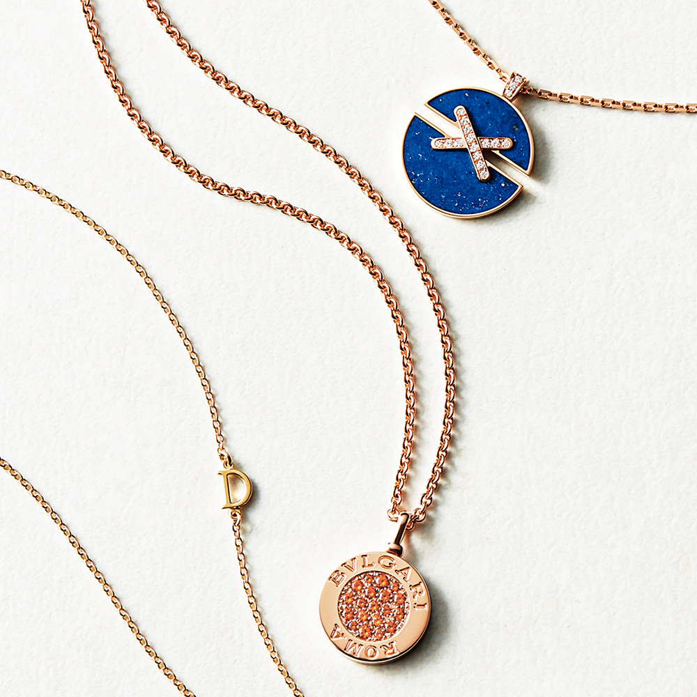 いわゆる円形のトップがついたネックレスで形に大差はないものの、メダリオンは、コインを模した柄だけでなく、貴石使いや星座、ブランドのアイコニックな意匠を施すなどデザイン性が高く、よりファッショナブル。