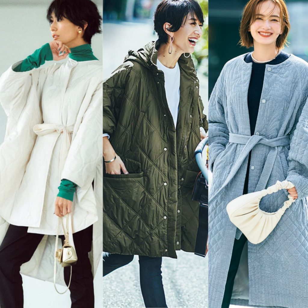 キルティングの甘めアウターなら 全身黒コーデもメリハリ。 立体フォルムで体形カバーも叶う