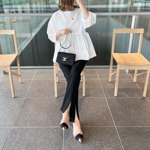 程よい丈感でレイヤードしやすいのもポイント。深めのスリットが入っているので、ボトムスを合わせても抜け感たっぷりに仕上がります。