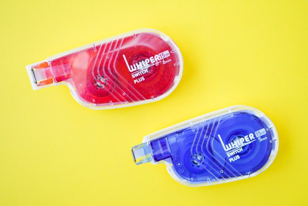修正テープが苦手という方は3つめのホワイパースイッチのように「ヨコ引き」と呼ばれるタイプを試してください。手首の角度が修正テープと上手く合わないとテープをまっすぐ引くことができずズレてしまいます。今回紹介したメーカー以外でもヨコ引きタイプは発売されています。
