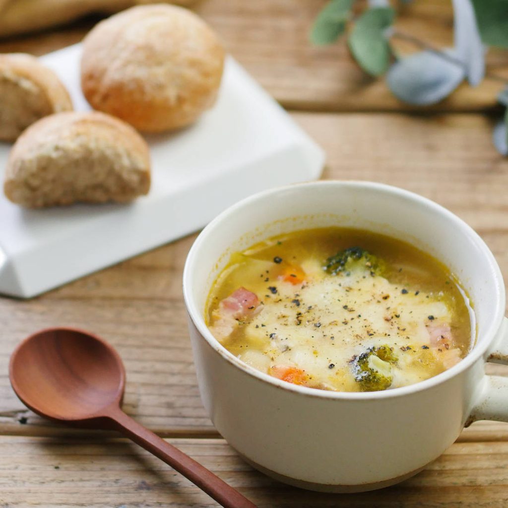 洗い物も最小限で、冷蔵庫の食材整理に最適。栄養もとれ、腹持ちも良い。いいことだらけの「パンとスープ」をぜひお試しくださいね。