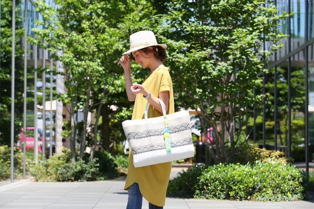 アイボリーは明るいトーンで、暗くなりがちな秋冬コーデが垢抜けます。グリーンのバッグやシューズなど、差し色を楽しむコーデでも、アイボリーのダウンなら色の邪魔をしません。