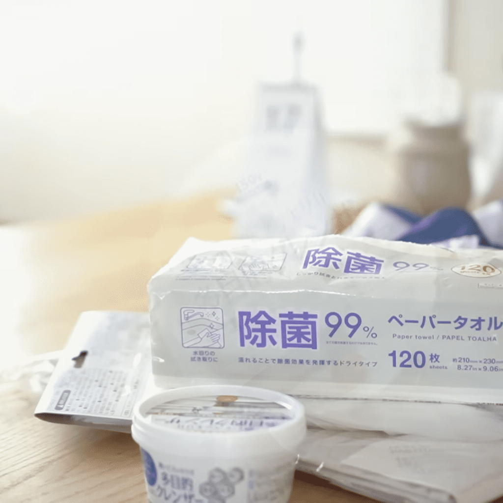 こちらはぬれると除菌効果を発揮するペーパータオルです。使った感じは、普通のペーパータオルと同じ。テーブルの上に水をスプレーして拭き取るだけで、除菌までできるのはいいですね。