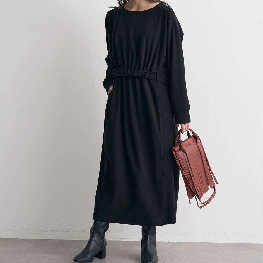 夫ウケする大人の秋ワンピース⑤YECCA VECCAのギャザーデザイン起毛ワンピース