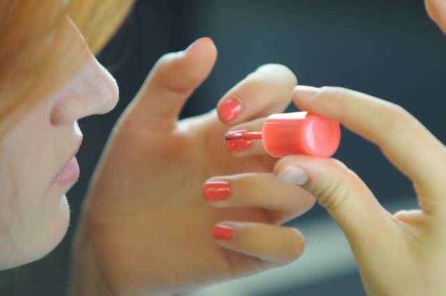 ホワイトをベースに塗り、その上から小さなクラッシュシェルを散らします。まるでドット柄のような可愛らしいネイルデザインが完成しますよ!レディな赤系のカラーを組み合わせて、みんなの視線が集中するとっておきのネイルを楽しんで。