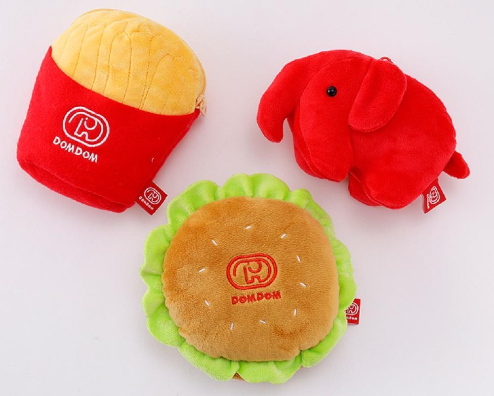 ポーチはどむぞうくん、ハンバーガー、ポテトフライの3型があります。鮮やかなカラーリングなので、見ているだけで楽しい気分になります。インテリア雑貨としても重宝できそうです。