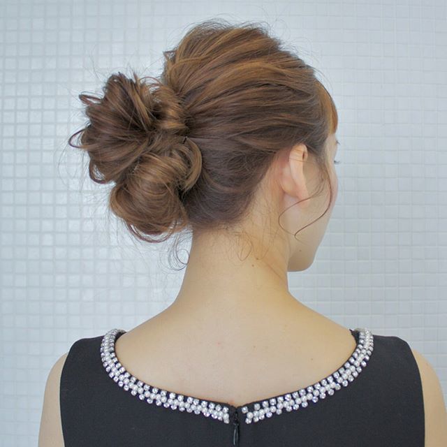 前から手を入れてラフにまとめながら引き上げ。結ぶ位置は下すぎると老けて見えがちなのでハチ上あたりで。トップは指で引き出して整えます。おくれ毛風の前髪がさりげなくフェイスラインをカバー。