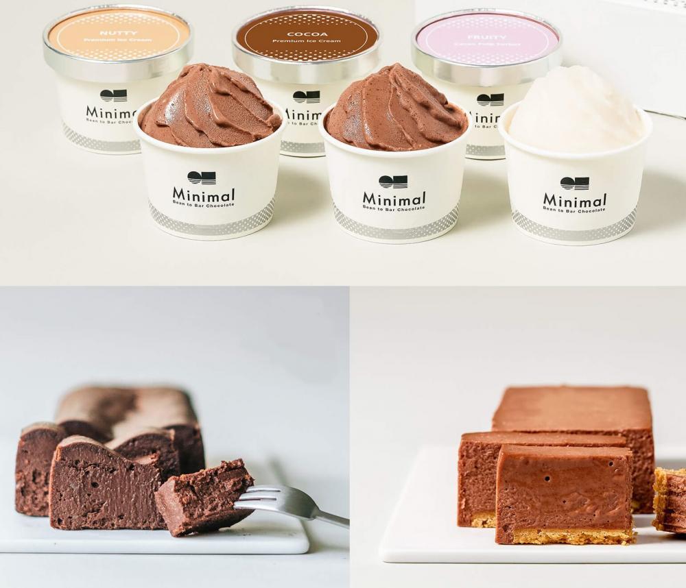 いずれも、板チョコレートからアイス、生ガトーショコラにチーズケーキなどミニマルのチョコレートを満喫できる内容です。
