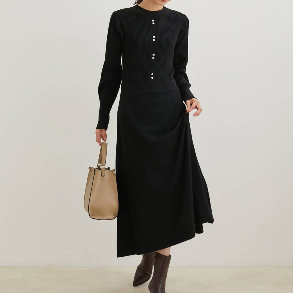 【2022秋冬】オフィスにも使えるワンピース①袖リブニットワンピース