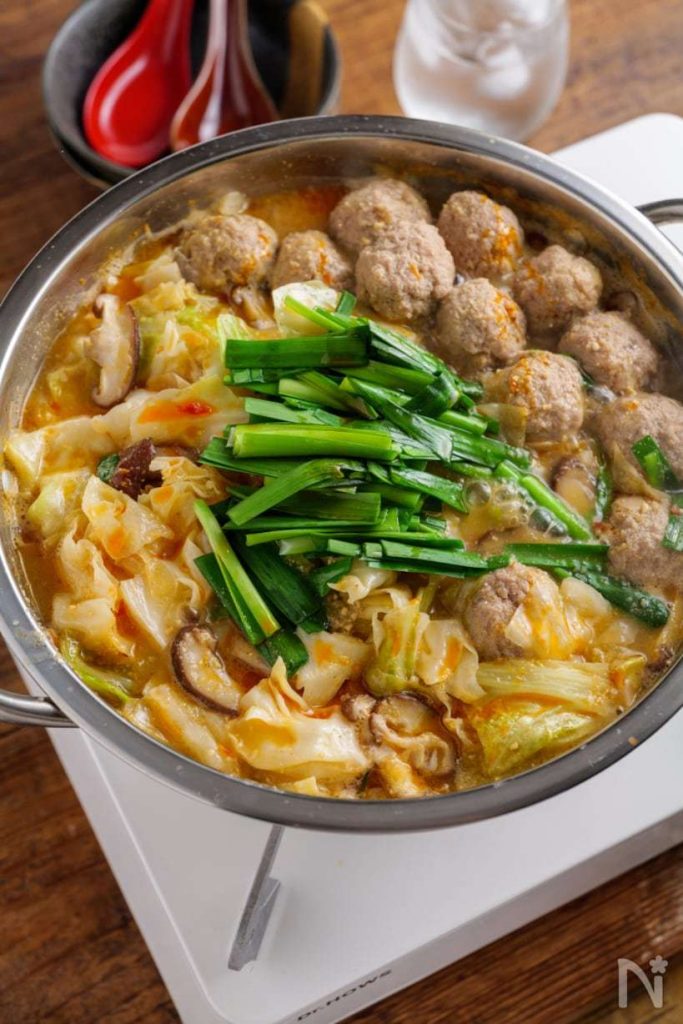 体ポカポカ!ふっくら肉団子とニラとキャベツの担々風ごま味噌鍋 | レシピサイトNadia